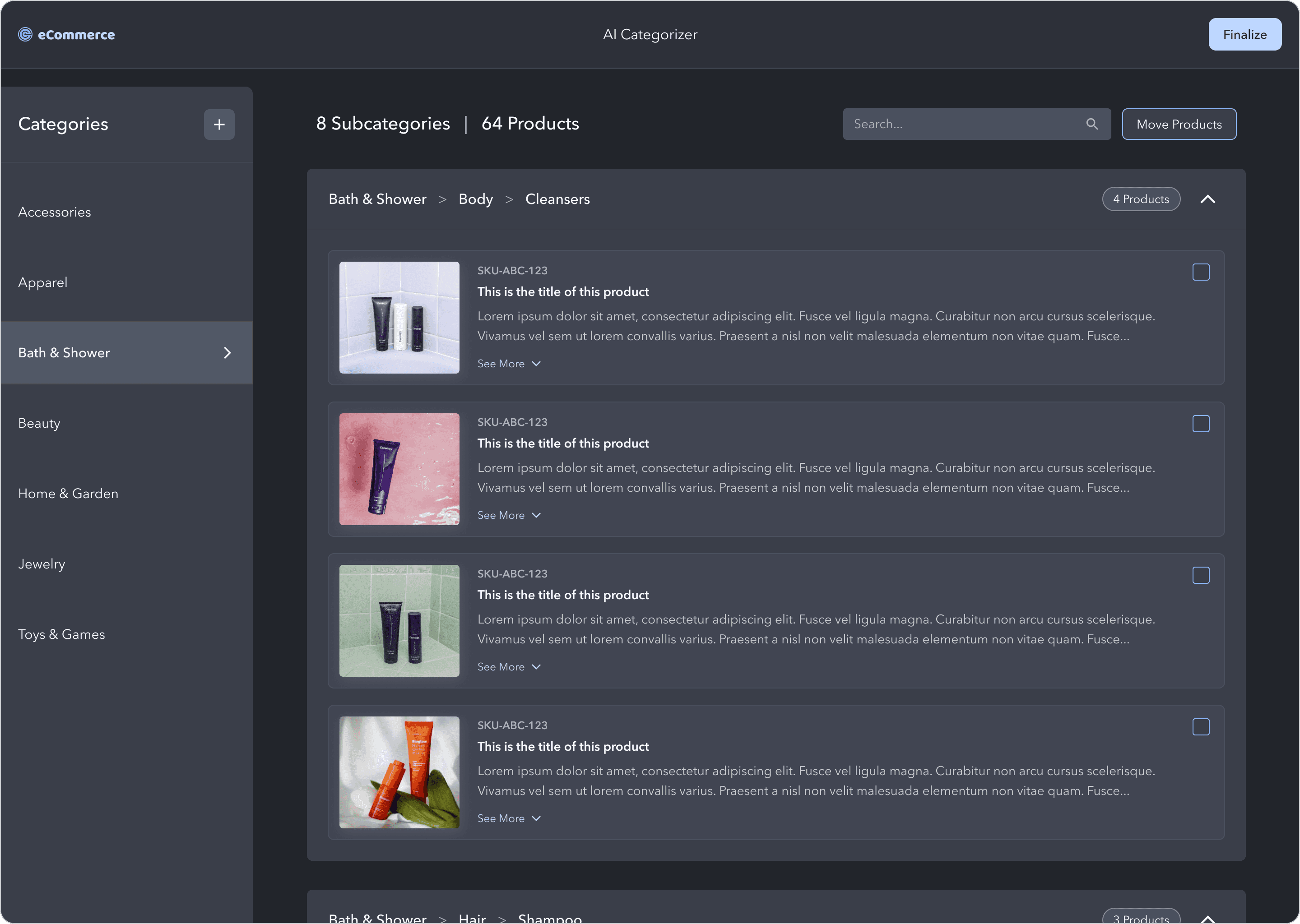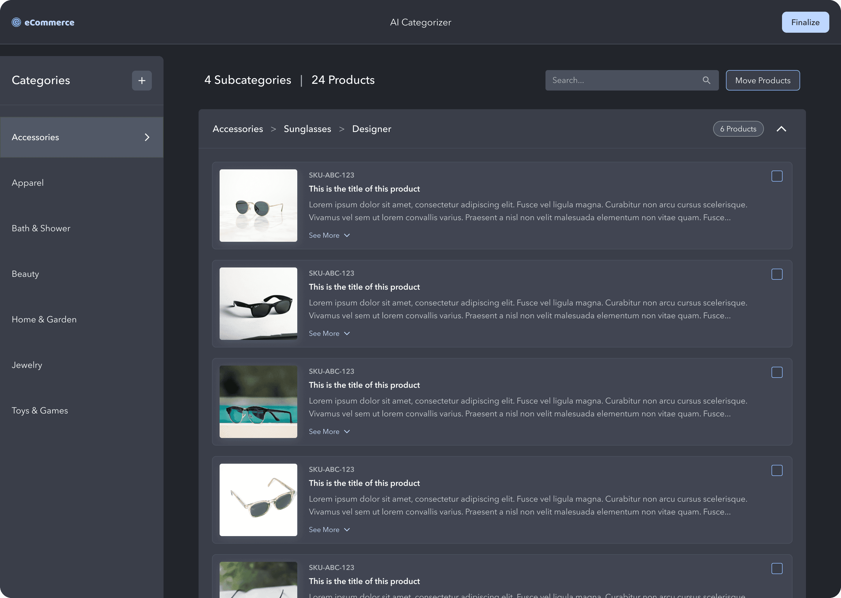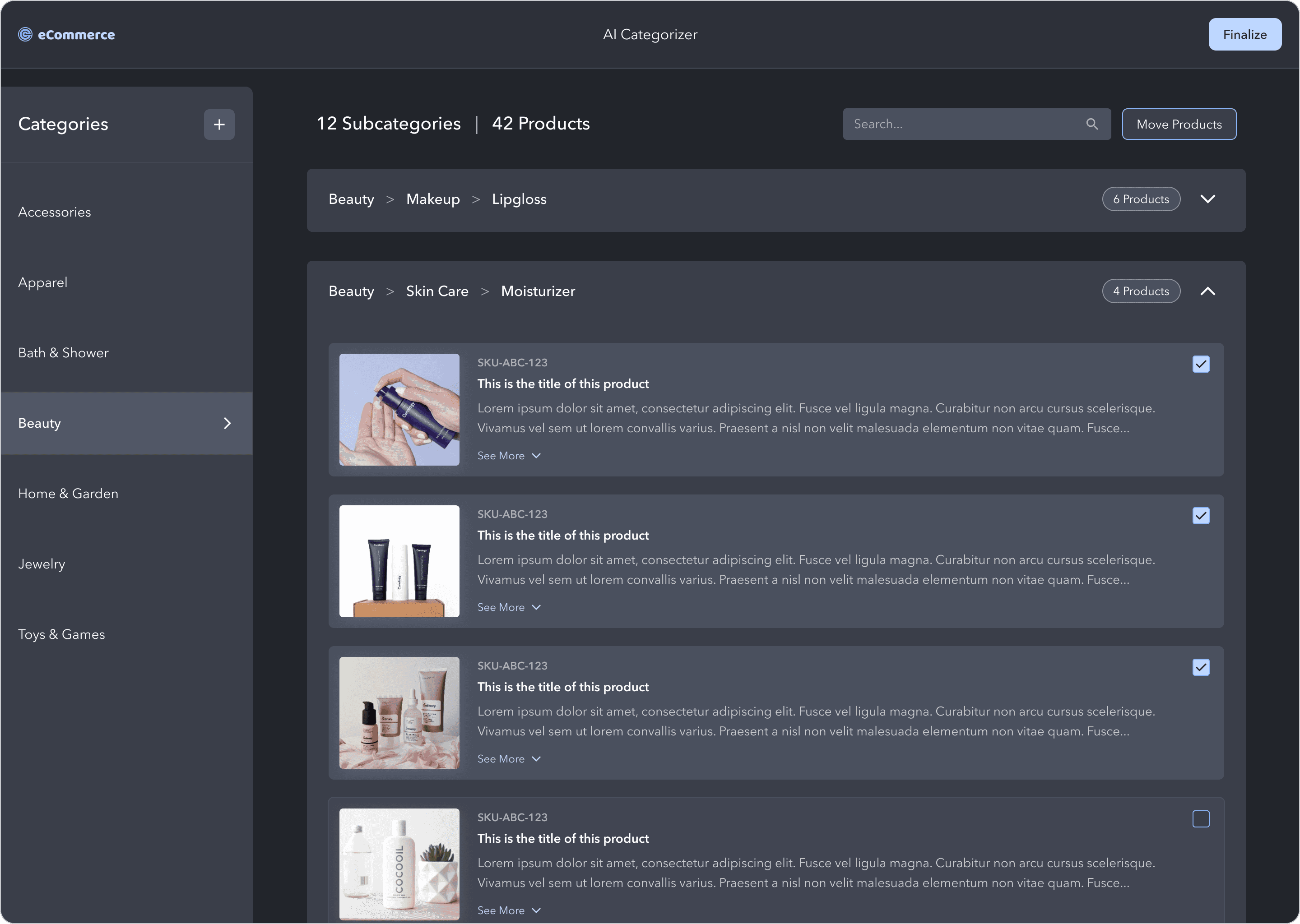 Once the user is happy with the product categories, they select Finalize in the top right to finish the process.