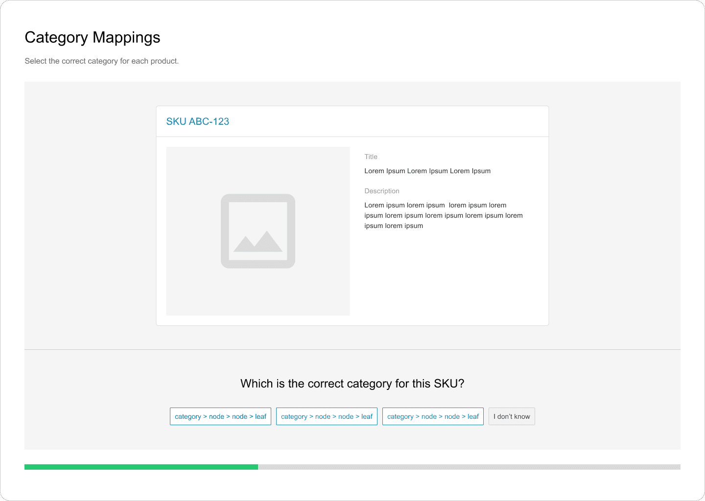 We initially expected users to label products until the progress bar reached 100%, indicating that the machine learning model had gathered sufficient data to categorize the rest of the user’s product catalog. This approach would require real-time communication between the model and the interface to update the progress bar, but our engineers indicated that this isn't feasible at this stage.