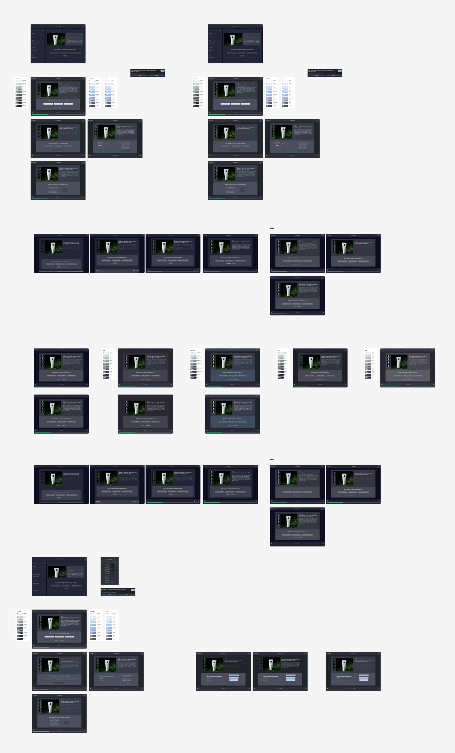 I began brainstorming various ways to create an experience that allows users to quickly label the category for a sample set of products. Here’s a glimpse into the ideation process: